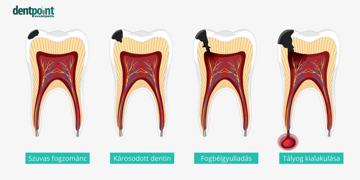 - Szűnni nem akaró, erős, lüktető fájdalom – ez általában a fogszuvasodás miatt kialakuló heves gyulladás tünete