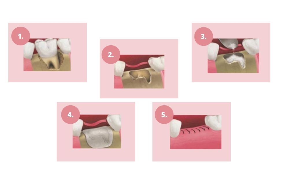 A gyógyulási időszak alatt a csontpótló anyag fokozatosan integrálódik a meglévő csontszövetbe. Amennyiben a beavatkozás nem az implantátum behelyezésével egyidőben történik, a csont megerősödését követően nyílik lehetőség az implantátumok beültetésére.